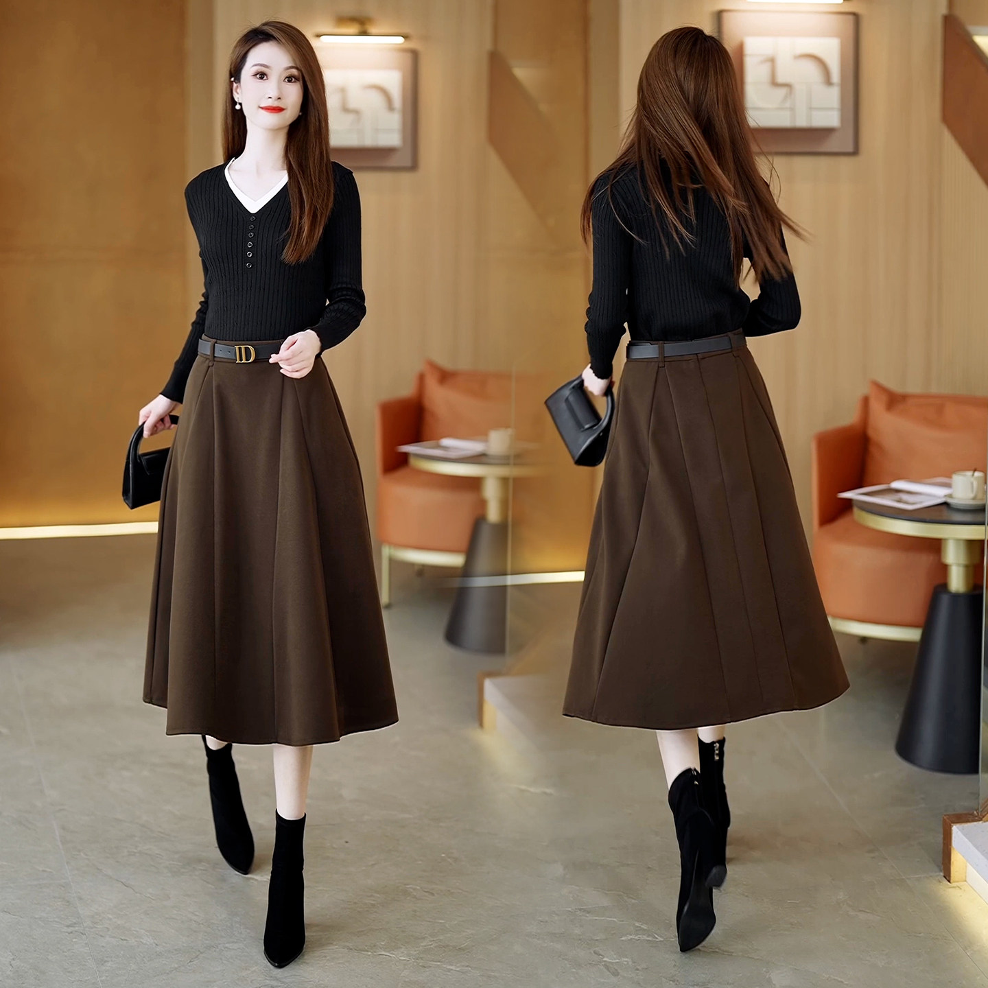 - 半身裙秋冬 中长款 黑色