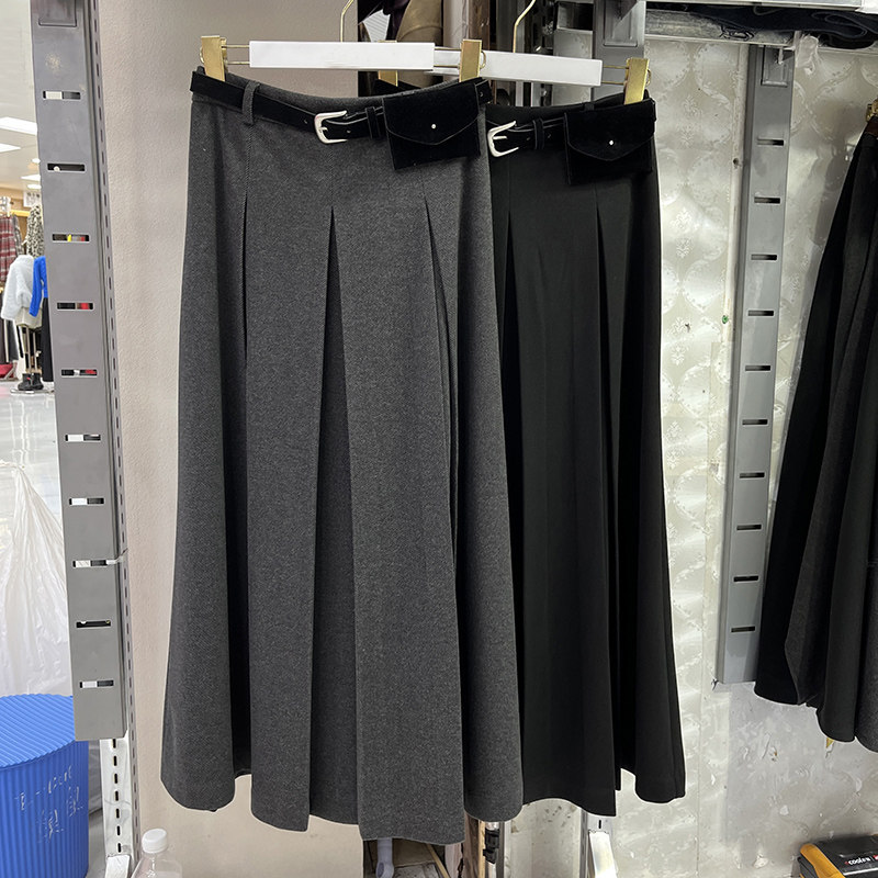 N669~【商场同步】25年冬季时尚百搭高腰A字百褶中长款半身伞裙女