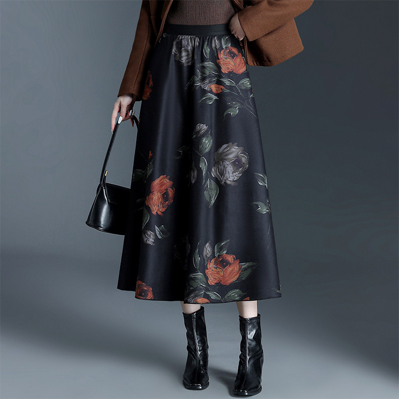 Boamarket 2色花朵半身裙女秋冬2025新款休闲A字百褶中长款裙子