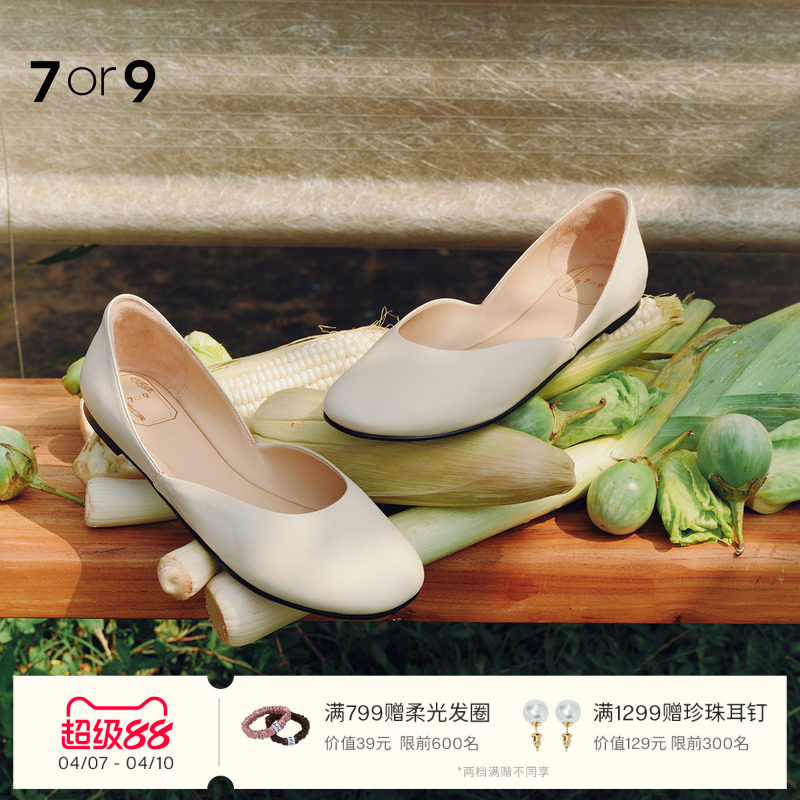 董洁同款7or9平底鞋女鞋春夏新款一脚蹬休闲通勤单鞋不掉跟白柠