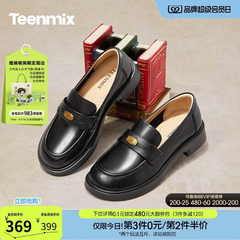 天美意英伦学院平底乐福鞋复古单鞋女一脚蹬软底小皮鞋2026春新款