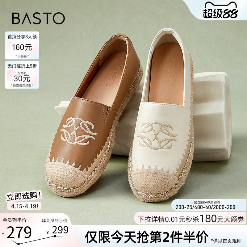百思图春新款休闲懒人一脚蹬小香风渔夫鞋平底女单鞋A0051AA4