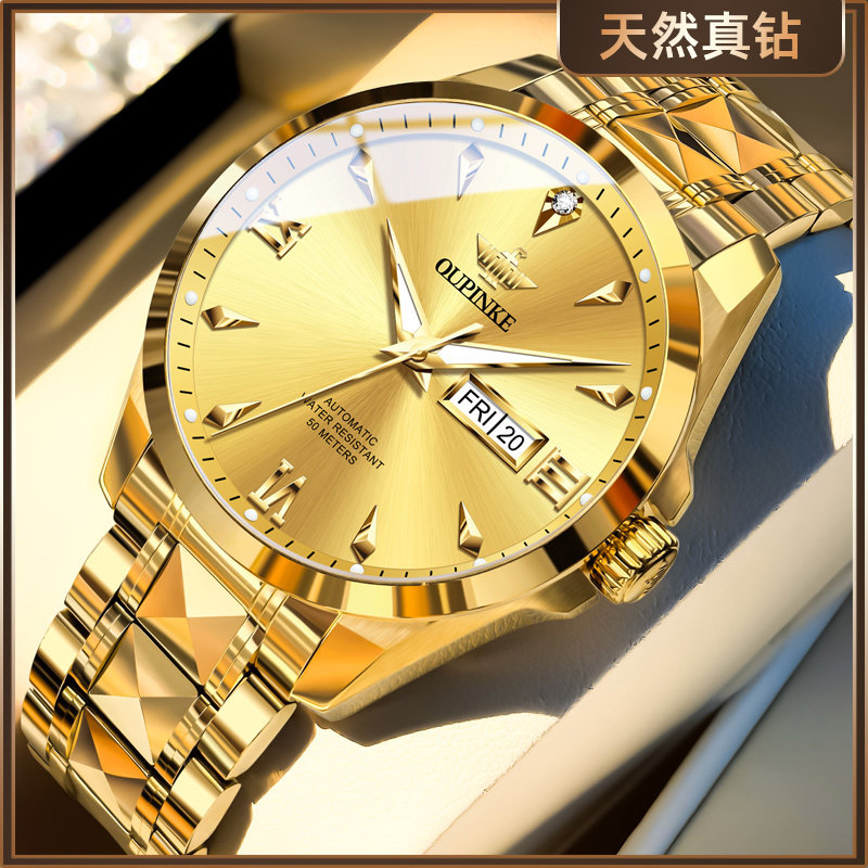 瑞士欧品客男士手表男款间金机械表钨钢防水夜光腕表正品牌名男表