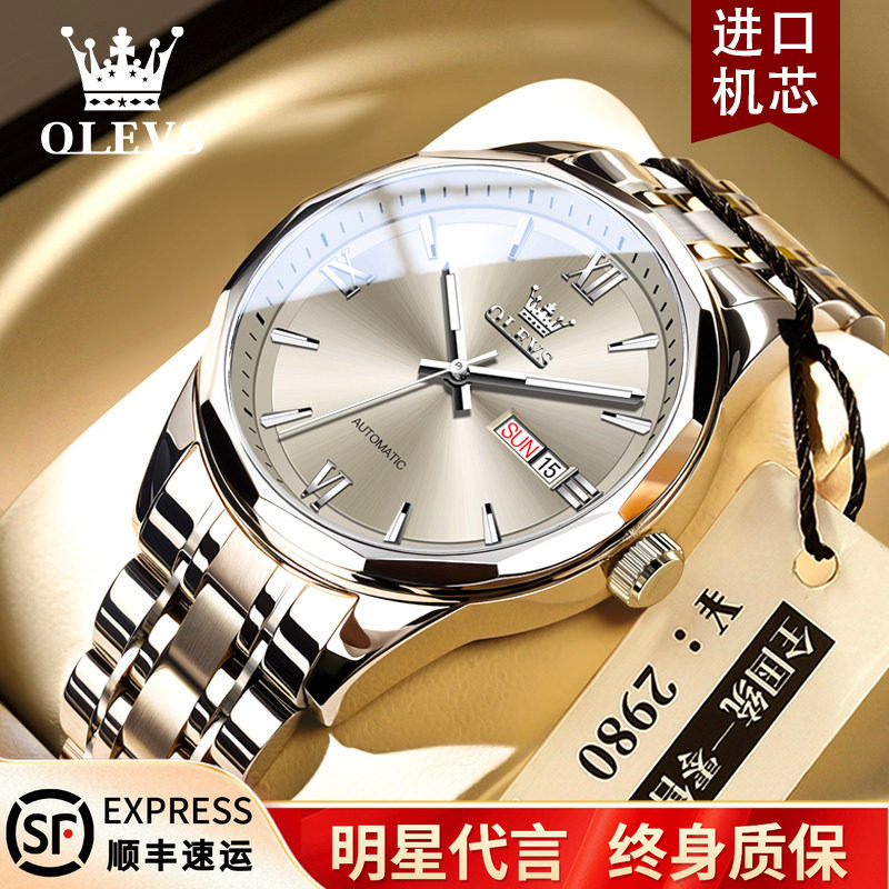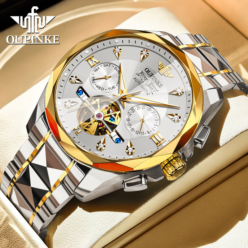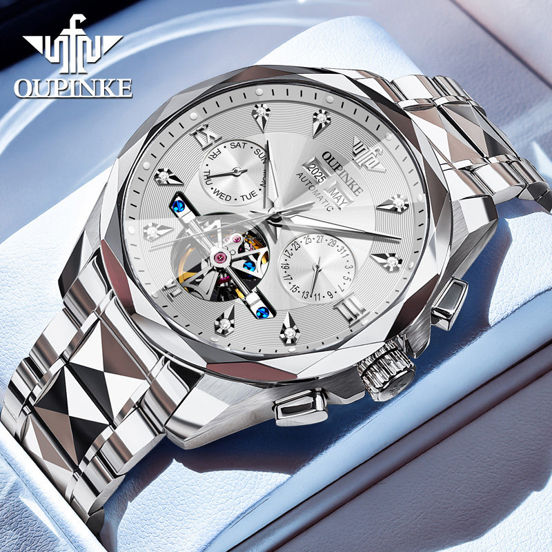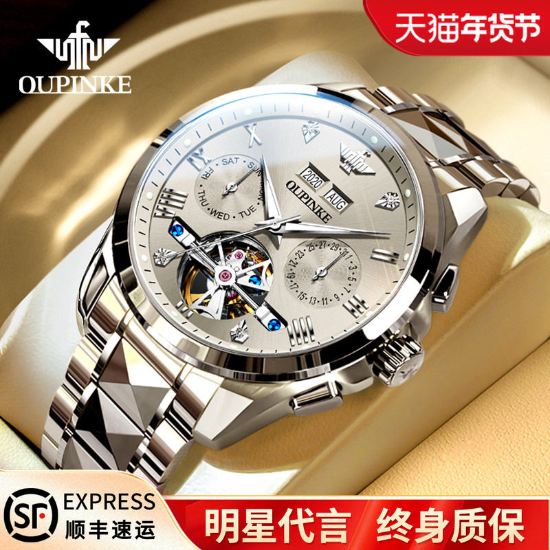 瑞士欧品客正品牌官方手表男士全自动机械表商务钨钢夜光月相十大