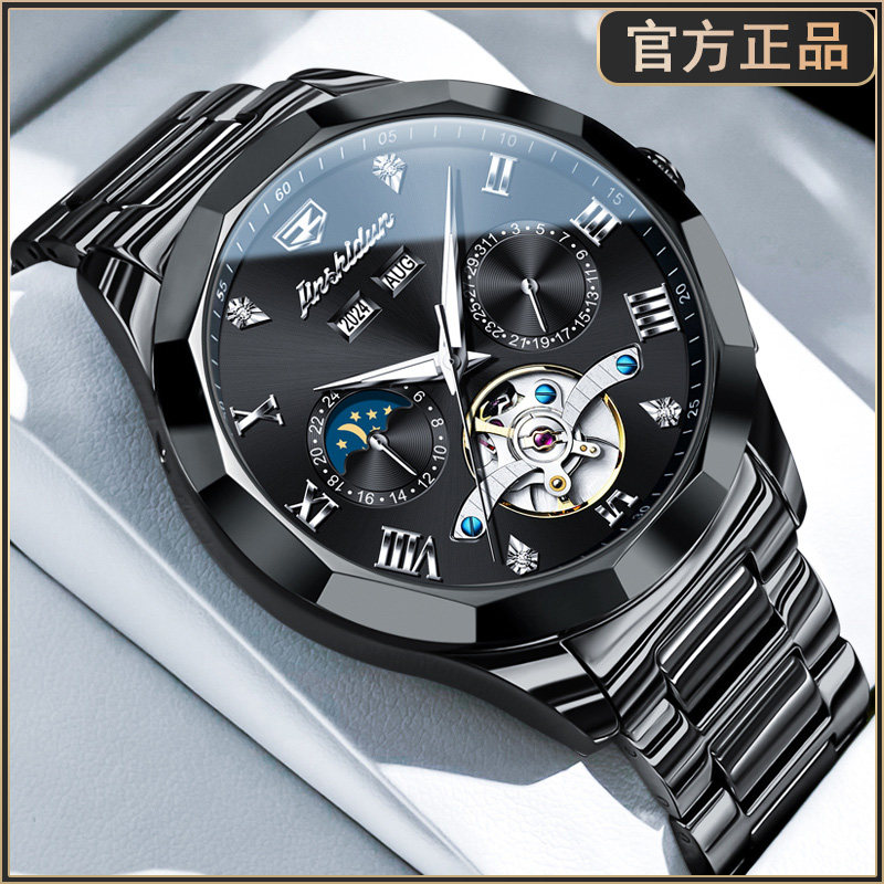 官方正品牌手表男士全自动机械表日月相钨钢带高档气质送礼物腕表