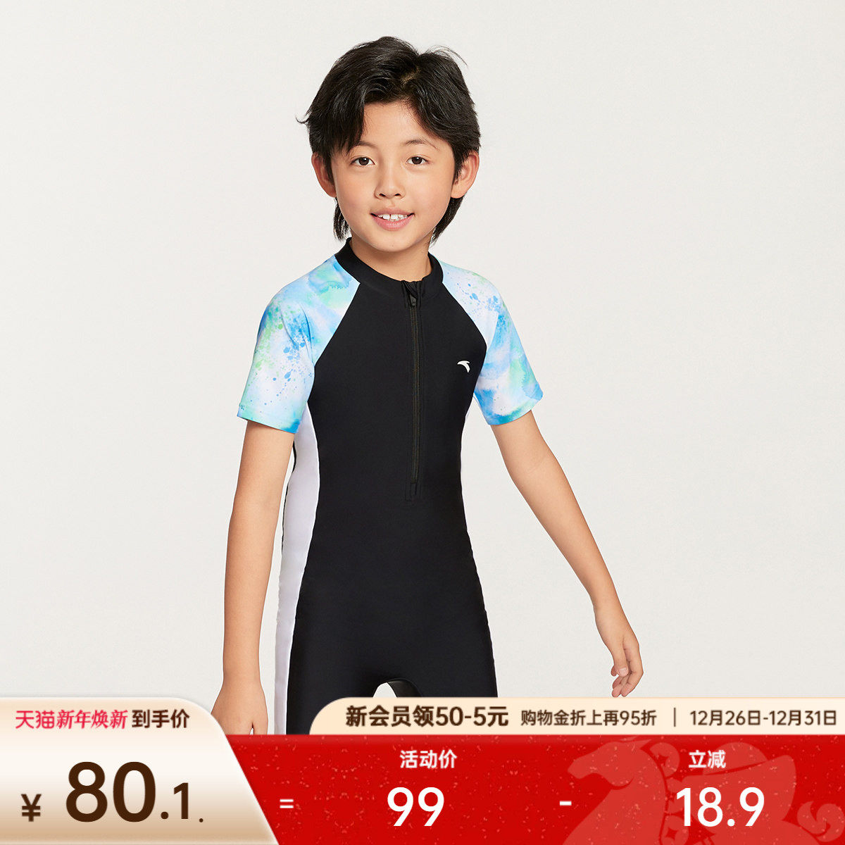 特步儿童泳衣男童2025新款连体防晒宝宝泳裤男孩专业游泳训练泳装