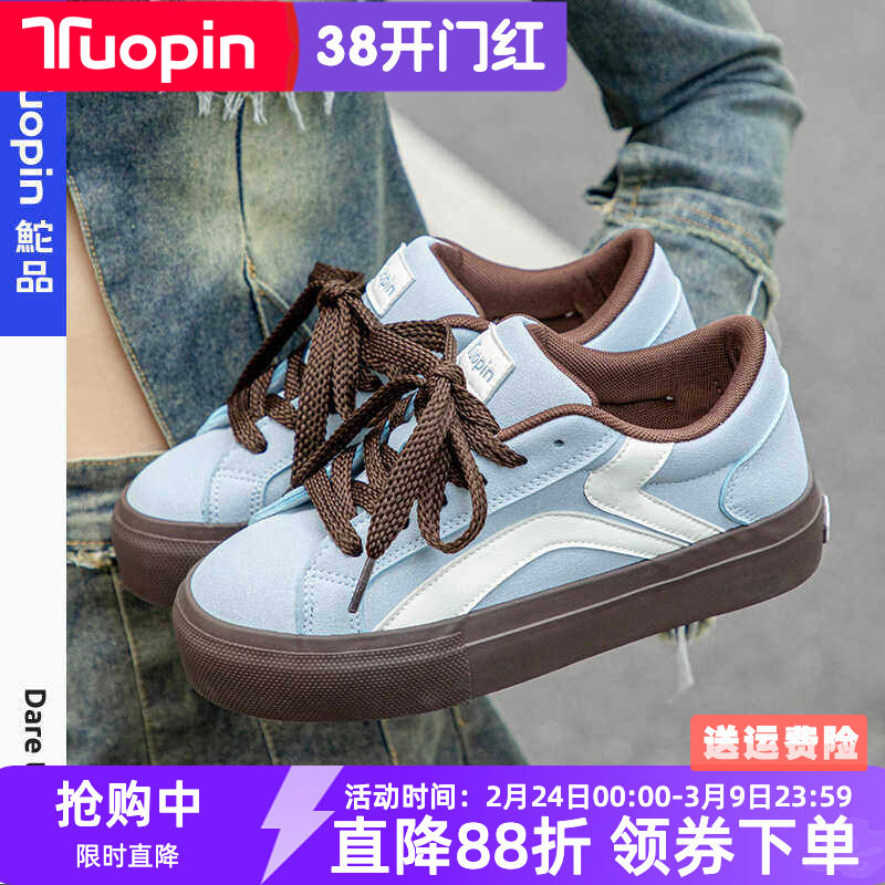 鮀品雾霾蓝板鞋女2026春季新款厚底小白鞋百搭女鞋学生休闲运动鞋