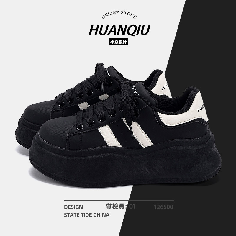 环球厚底增高板鞋女款2026新款春季百搭黑色鞋子女学生超好看女鞋