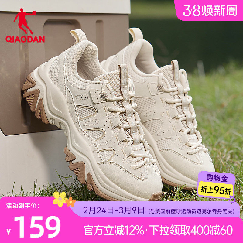 乔丹厚底增高休闲鞋女2025秋冬新品革网拼接学生百搭老爹鞋女鞋子