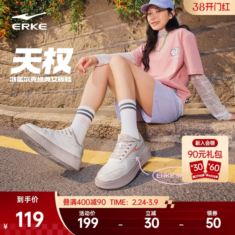 鸿星尔克板鞋女鞋春季新款鞋子厚底增高小白鞋学生休闲百搭运动鞋