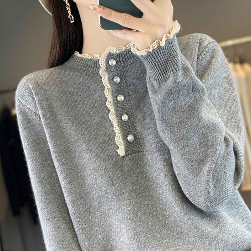 秋冬爆款复古麻花外穿针织衫蕾丝拼接毛衣女套头韩版宽松学生短款