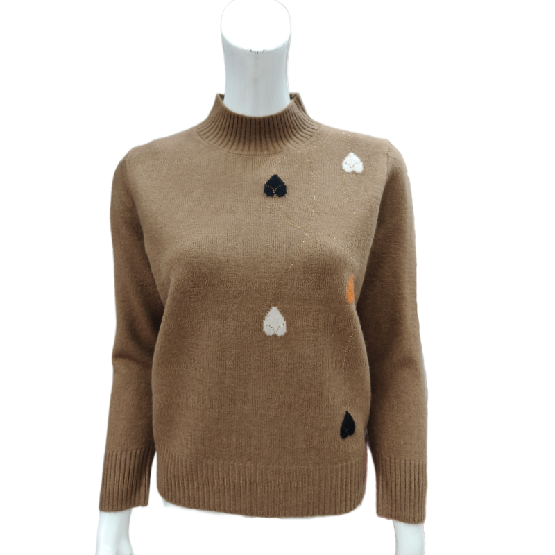 2025秋冬半高领毛衣女爱心套头短款宽松韩版羊毛针织衫中领打底衫