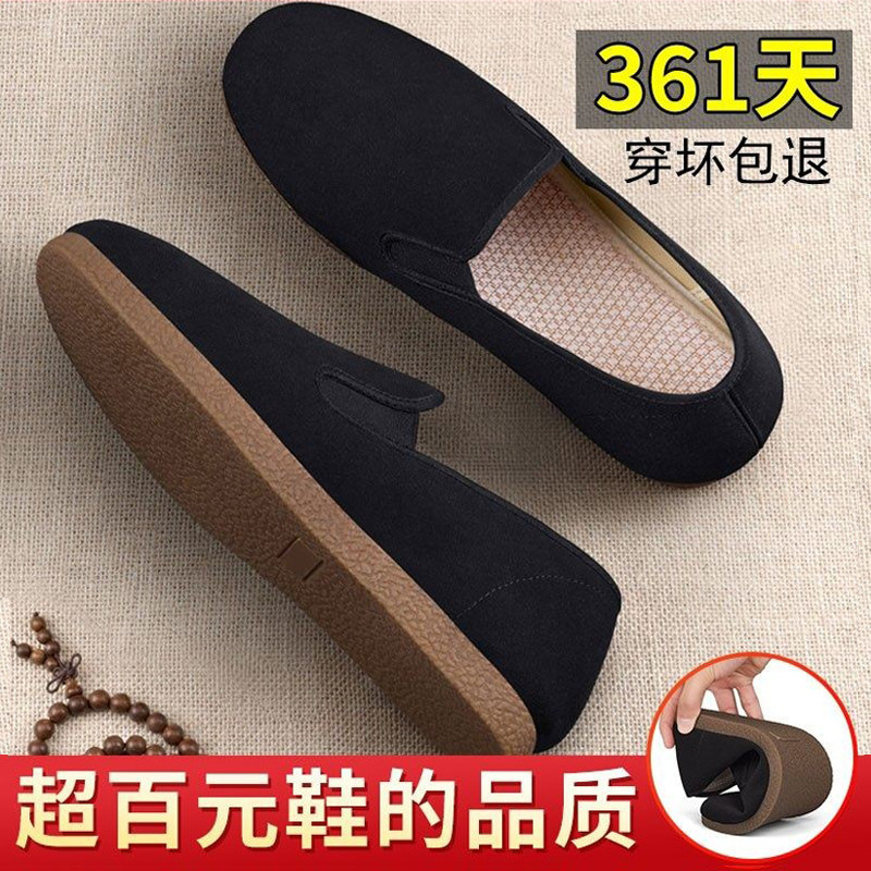 老北京布鞋男款透气一脚蹬防臭黑布鞋布鞋男春秋牛筋底鞋耐磨防滑