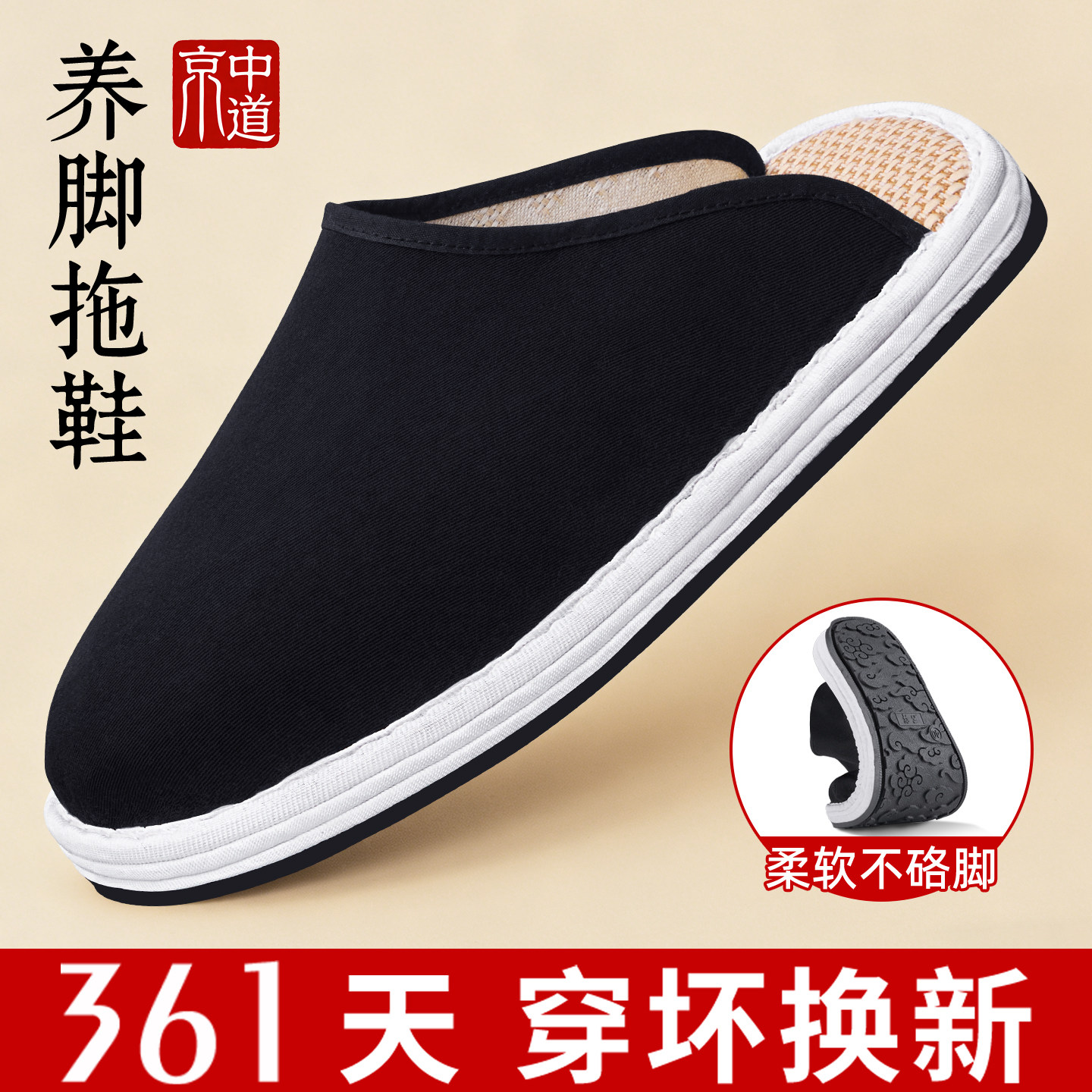 老北京布鞋男新款布拖鞋千层牛筋底包头拖透气养脚休闲居家换脚鞋