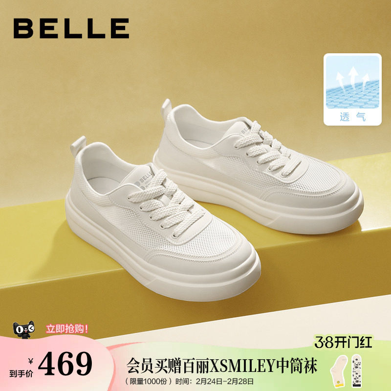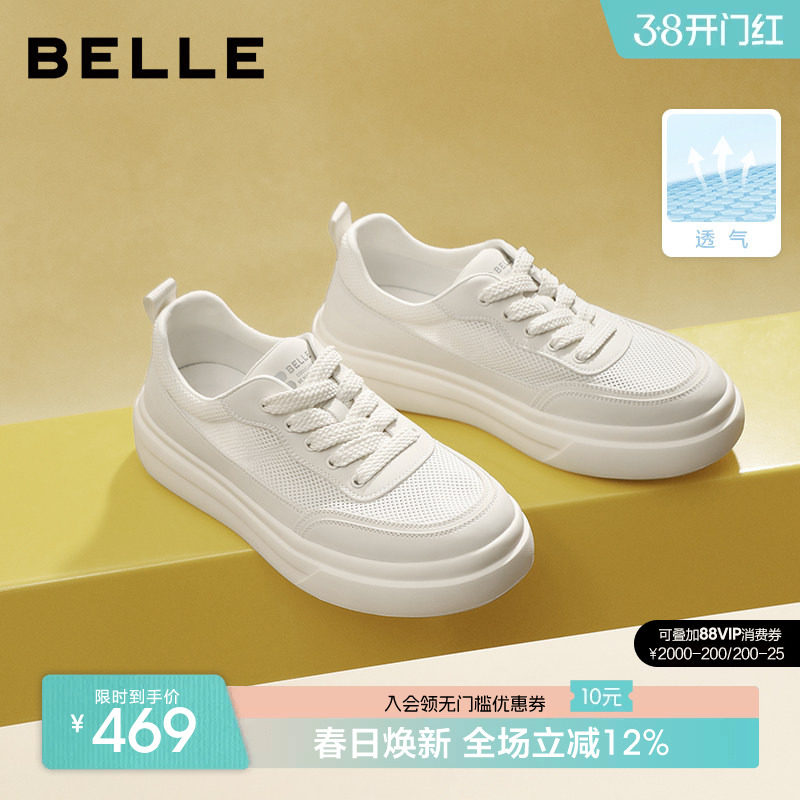 百丽男鞋网面透气增高休闲小白板鞋夏季男士款大头面包布鞋8YF01D