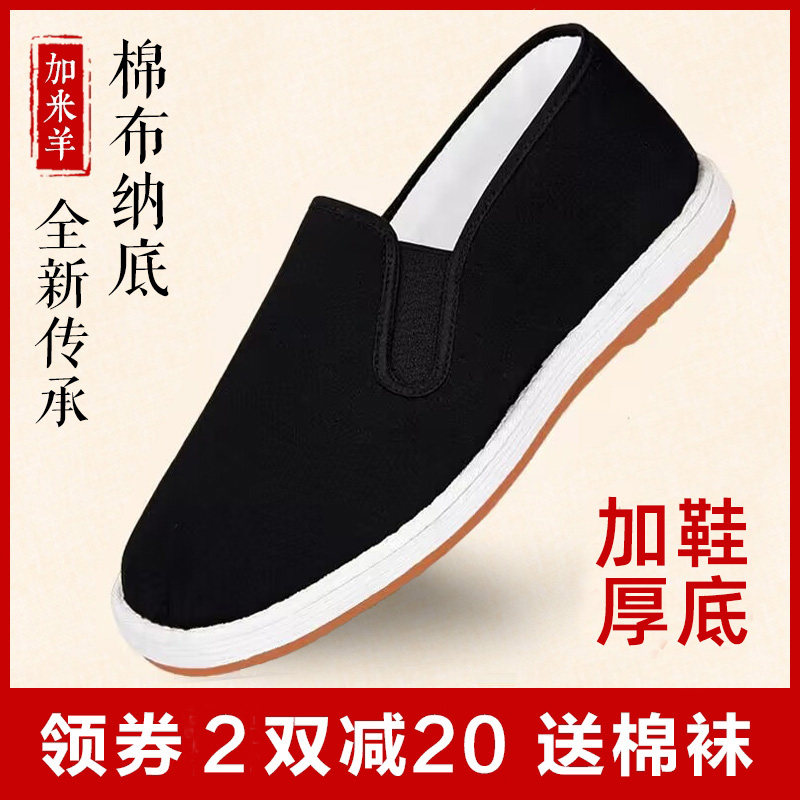 加米羊老北京布鞋男春夏手工千层底透气休闲防滑黑布鞋旗舰店官方