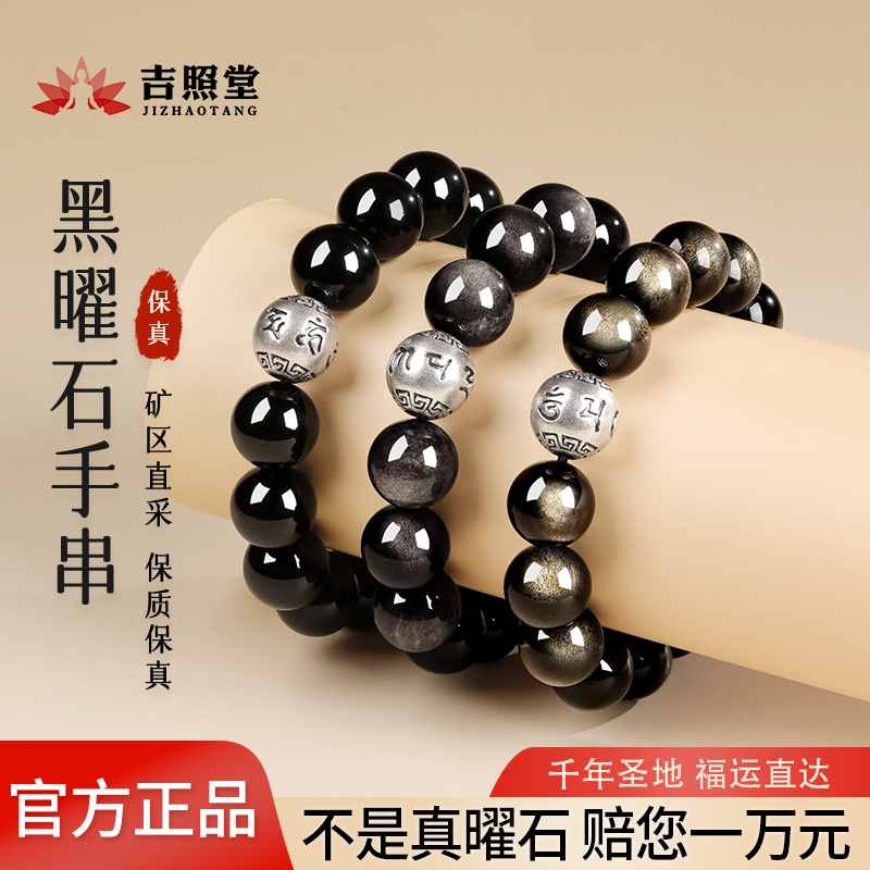 天然黑曜石手链男士女款情侣款本命年烫金六字真言转运珠佛珠手串