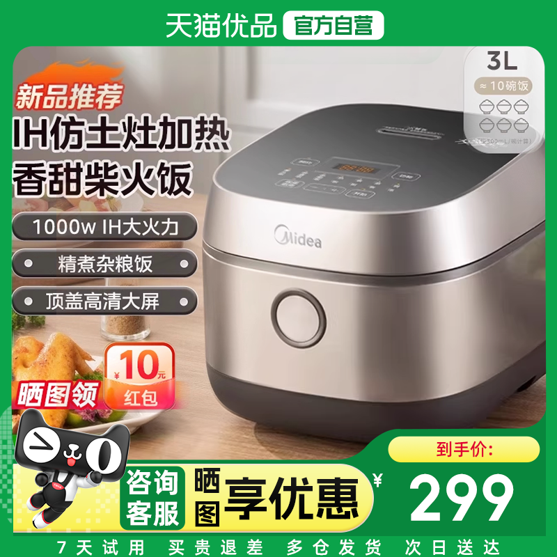 美的IH电饭煲家用3升新款电饭锅2到3到4人多功能智能快速煮饭官方