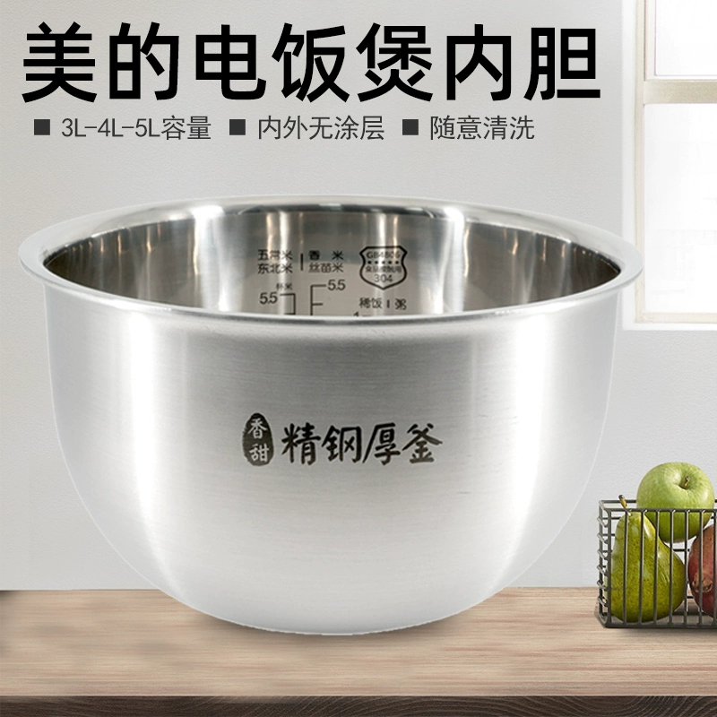 适用美的IH智能电饭煲配件内胆304不锈钢0涂层内锅鼎釜3L/4L/5升
