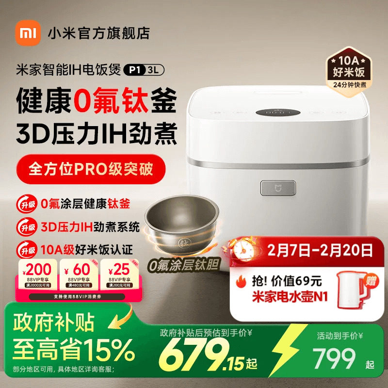 小米官旗米家智能IH电饭煲P1家用3L家用多功能煮饭锅电饭锅