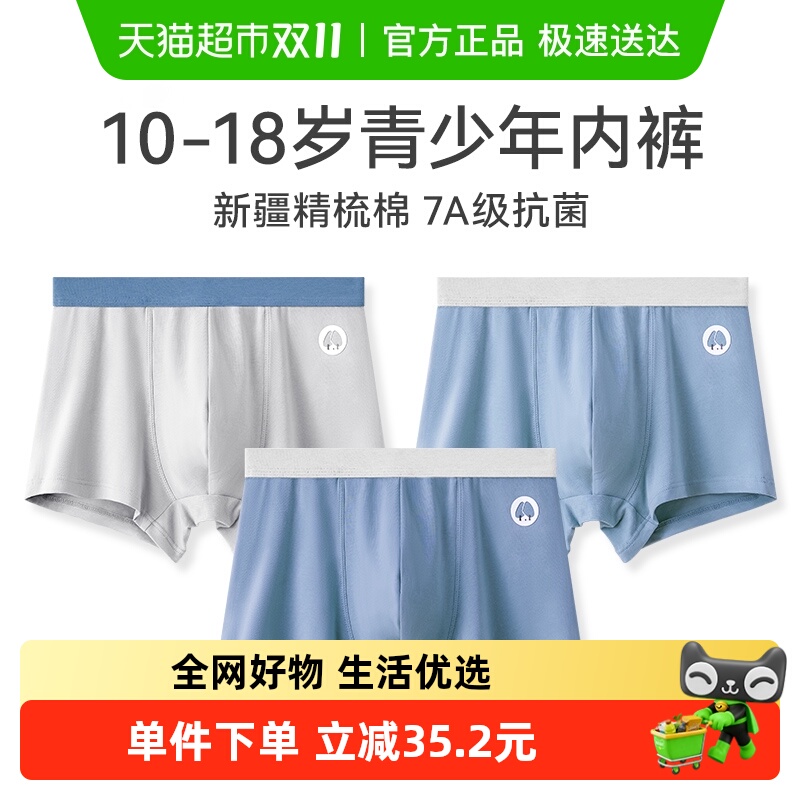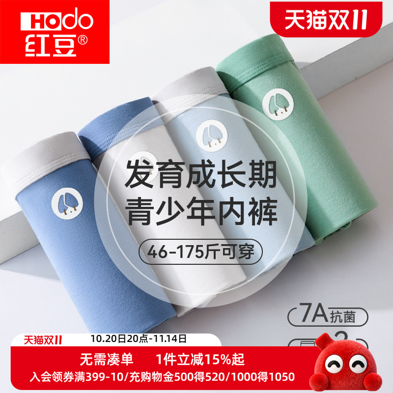红豆青少年内裤男纯棉抗菌裆A类10-19岁发育期初中高中学生平角裤