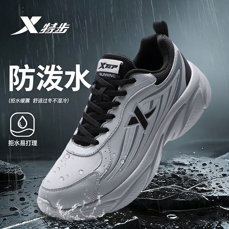 特步男鞋秋冬跑步鞋男士透气休闲鞋子防水耐磨皮面减震运动鞋男款