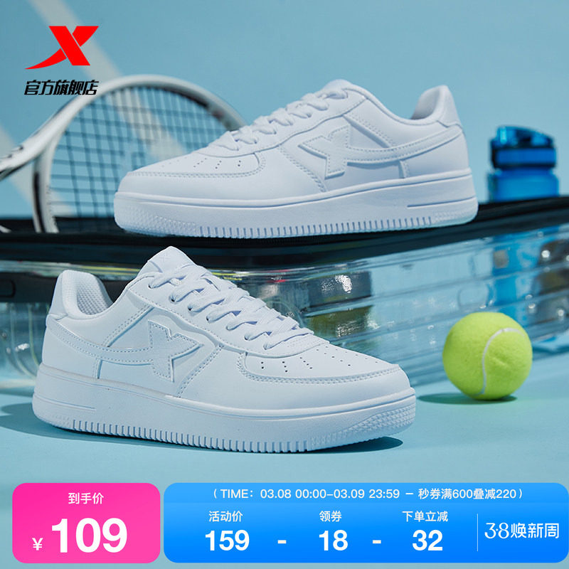 特步小白鞋女鞋春季情侣百搭休闲鞋子男鞋空军一号厚底运动鞋板鞋