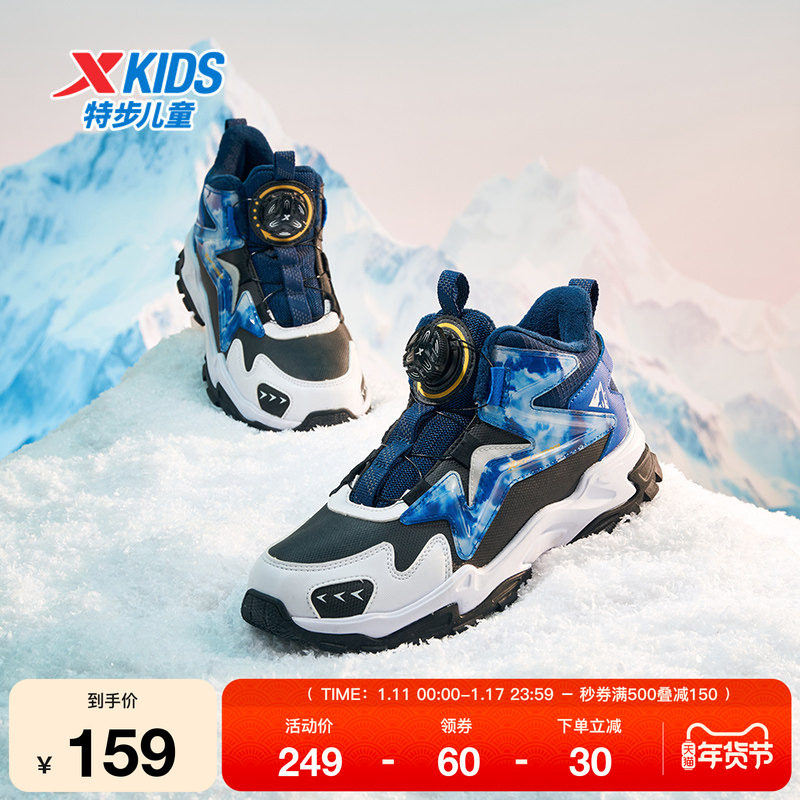特步男童鞋冬季新款高帮加绒加厚保暖二棉棉鞋中大童旋钮扣运动鞋