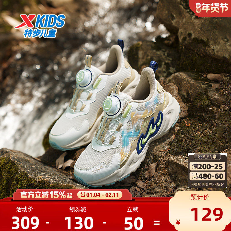 特步男童鞋2025新款春季网面透气儿童运动鞋中大童冬轻便舒适鞋子