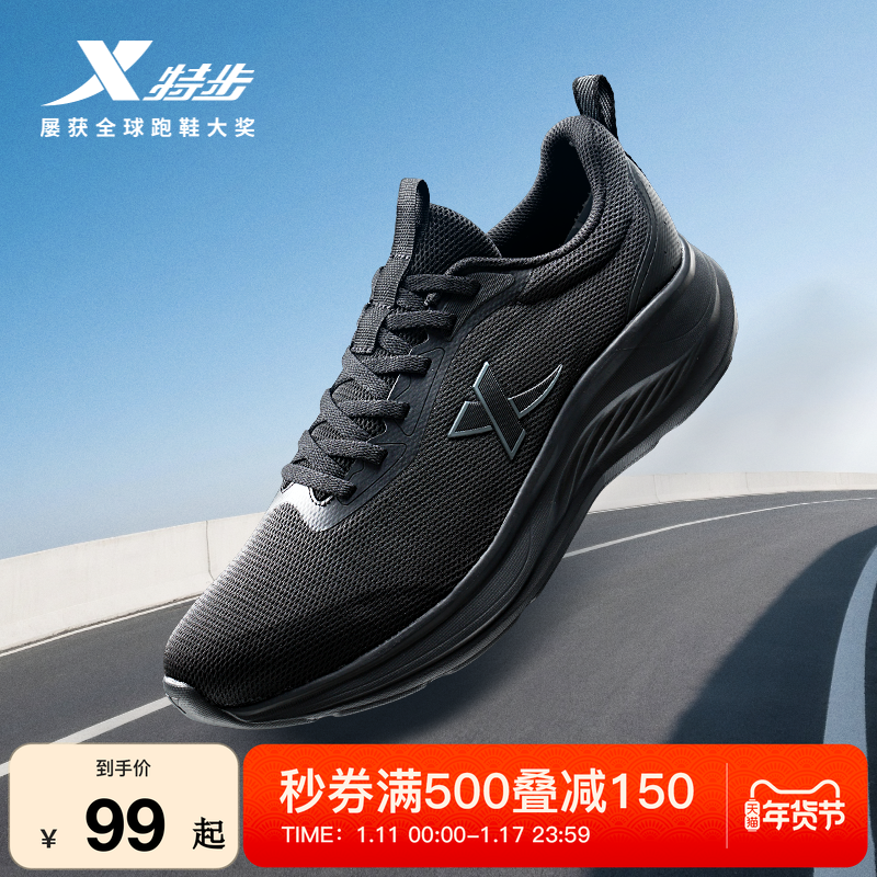 特步男鞋官方旗舰正品冬季新款黑色爸爸运动鞋男款轻便减震跑步鞋