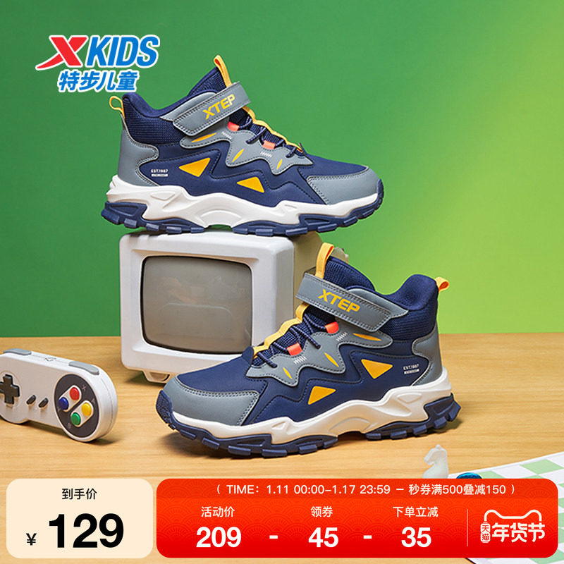 特步男童鞋新款秋冬季儿童棉鞋中大童皮面休闲潮减震保暖运动鞋子