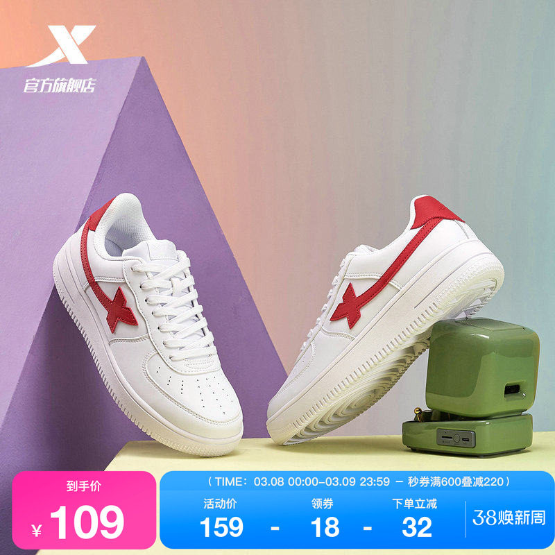 特步板鞋女鞋空军一号休闲鞋2026春季新款男鞋小白鞋潮流运动鞋子