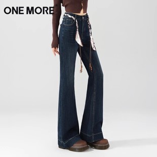 one more复古蓝微喇叭牛仔裤女秋季流行风格修身编织丝带马蹄裤S
