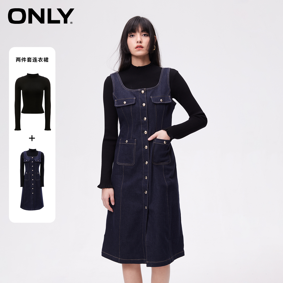 织物猪 半熟芝士 通勤风牛仔半身长裙套装女秋修身假两件长袖上衣