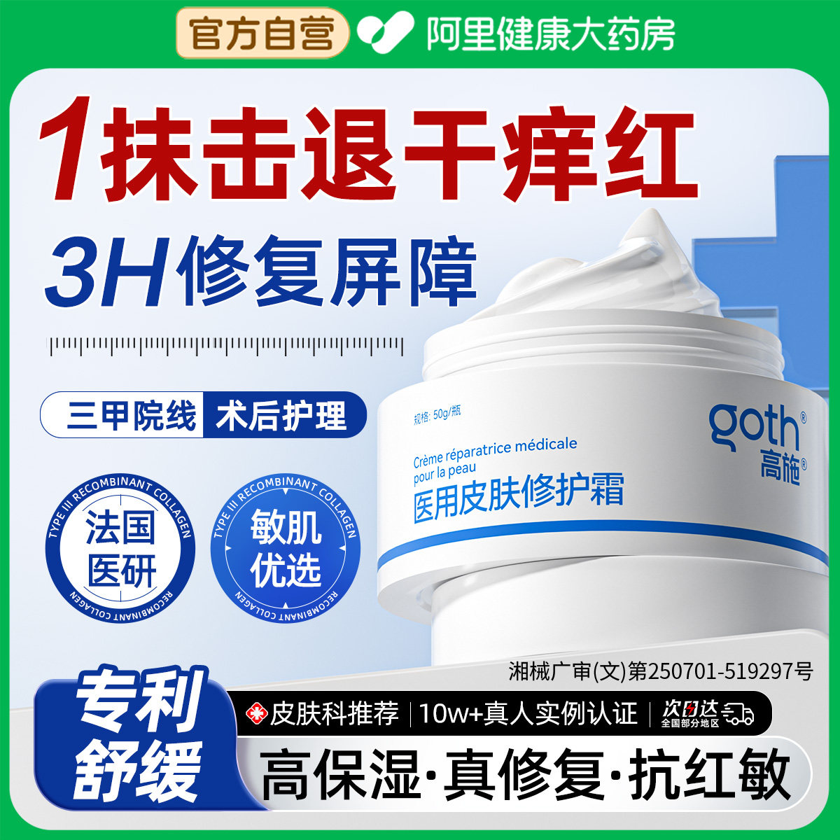 医用修复皮肤屏障面霜去红血丝械准字号敷料修护敏感肌肤受损泛红