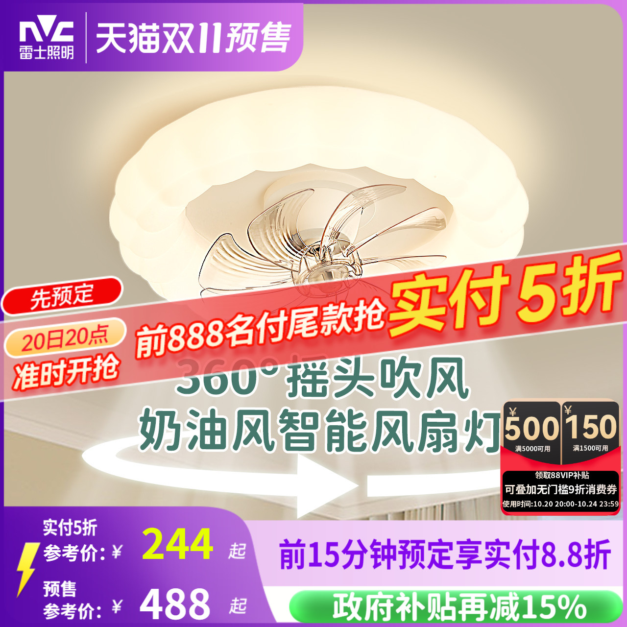 雷士照明摇头风扇灯吊灯奶油风主灯现代简约灯具卧室灯法式客厅灯