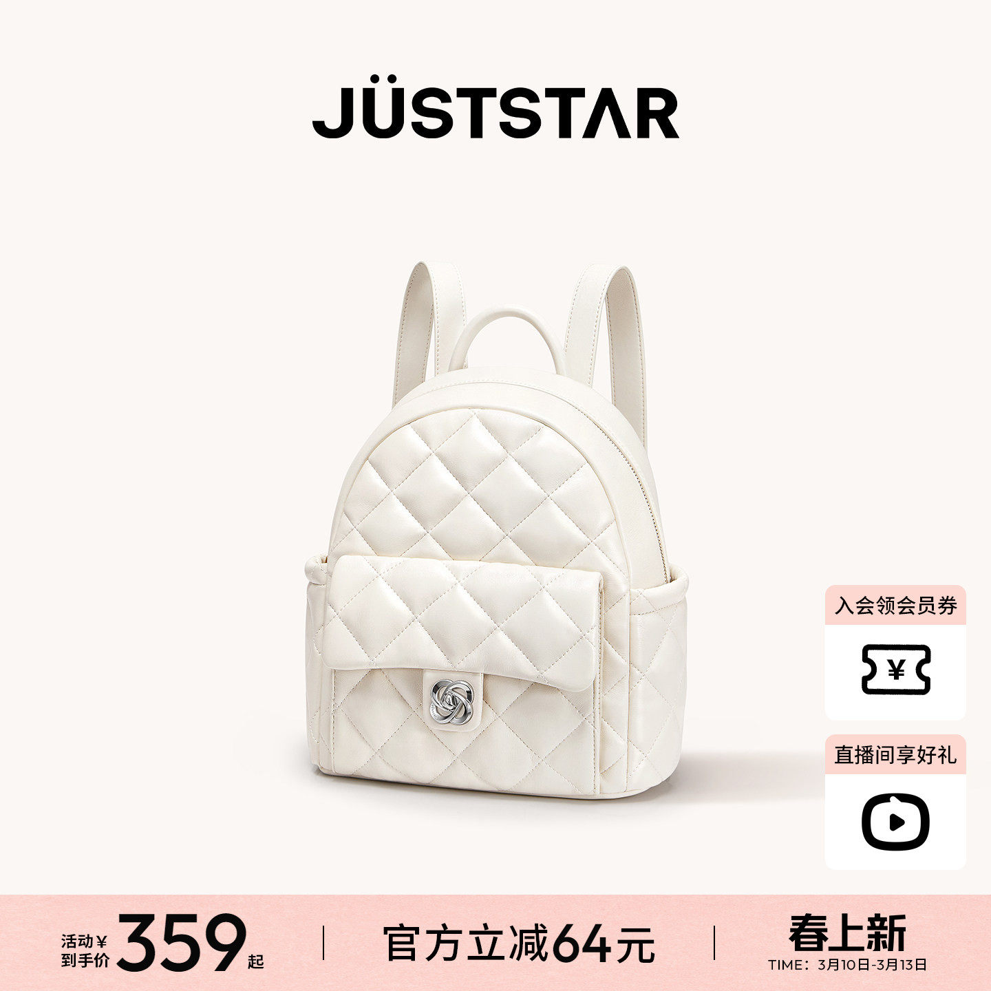 欧时纳双子星双肩包2026新款女小香风菱格高级感通勤轻便旅行背包