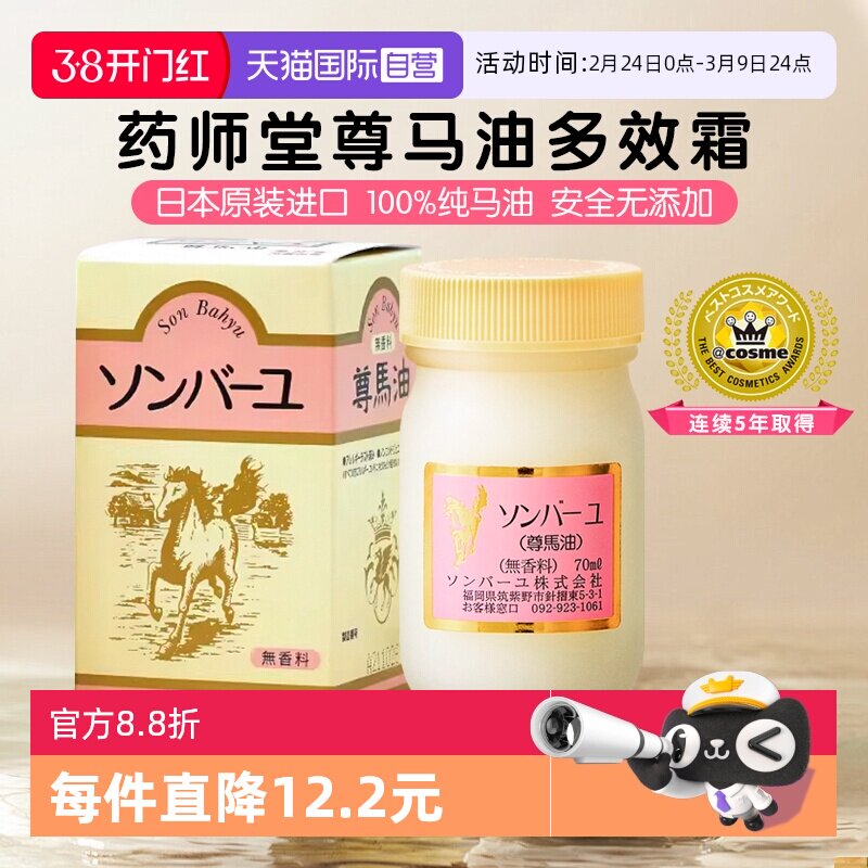 日本药师堂尊马油淡斑祛痘天然保湿润肤面霜身体乳全身防干裂70ml