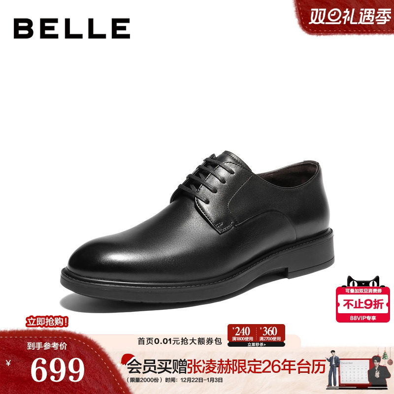 百丽男鞋英伦风通勤商务正装真牛皮鞋男26新款春季结婚鞋A2266AM6