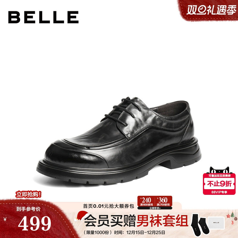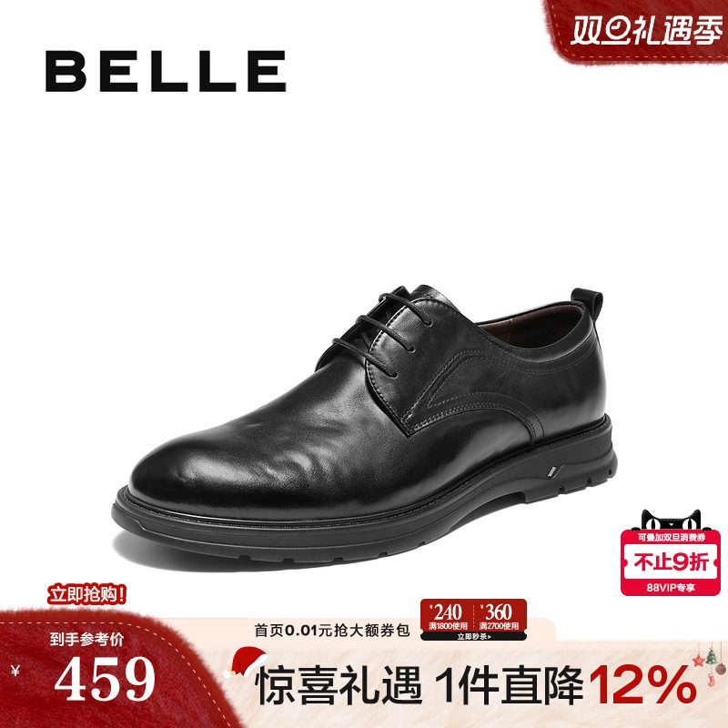 百丽男鞋通勤商务真牛皮鞋男士25冬新商场款正装婚鞋加绒保暖8vs