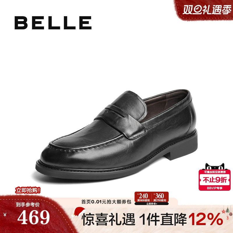 百丽男鞋一脚蹬商务真牛皮鞋男士2025新款通勤正装乐福鞋A2031CM5