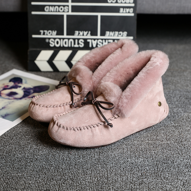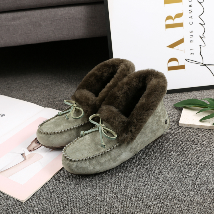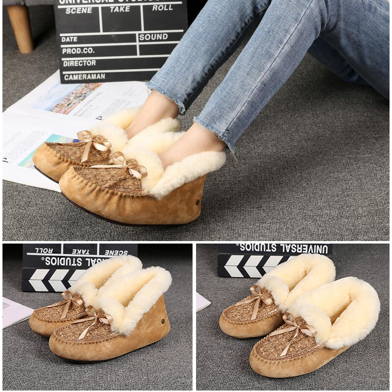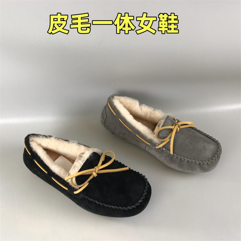 羊皮毛一体 冬季保暖加绒 真皮 马衔扣乐福鞋豆豆鞋 深口大码女鞋