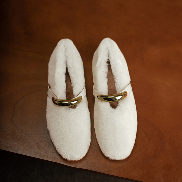 欧洲站2025秋冬新款皮毛一体平底鞋棉瓢女鞋一脚蹬毛毛鞋豆豆鞋女
