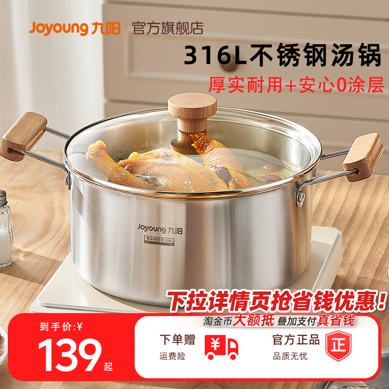 九阳汤锅316L不锈钢加厚家用奶锅煮粥锅炖锅煮锅锅具燃气电磁炉炊