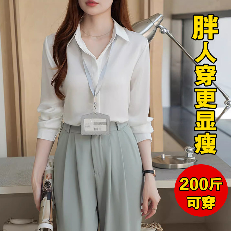 白色雪纺衬衫上衣女秋长袖大码胖mm200斤设计感小众职业面试衬衣