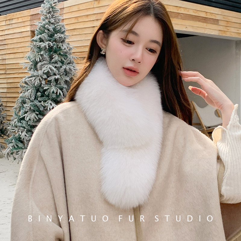狐狸毛围巾女冬季加厚双面百搭简约气质护颈仿皮草獭兔毛毛领围脖