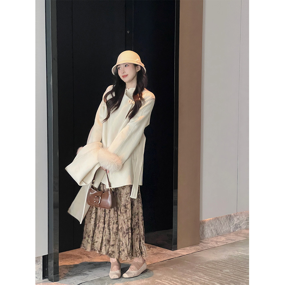 欧洲站狐狸毛围脖斗篷双面羊毛呢子大衣外套女中长款25冬季新款