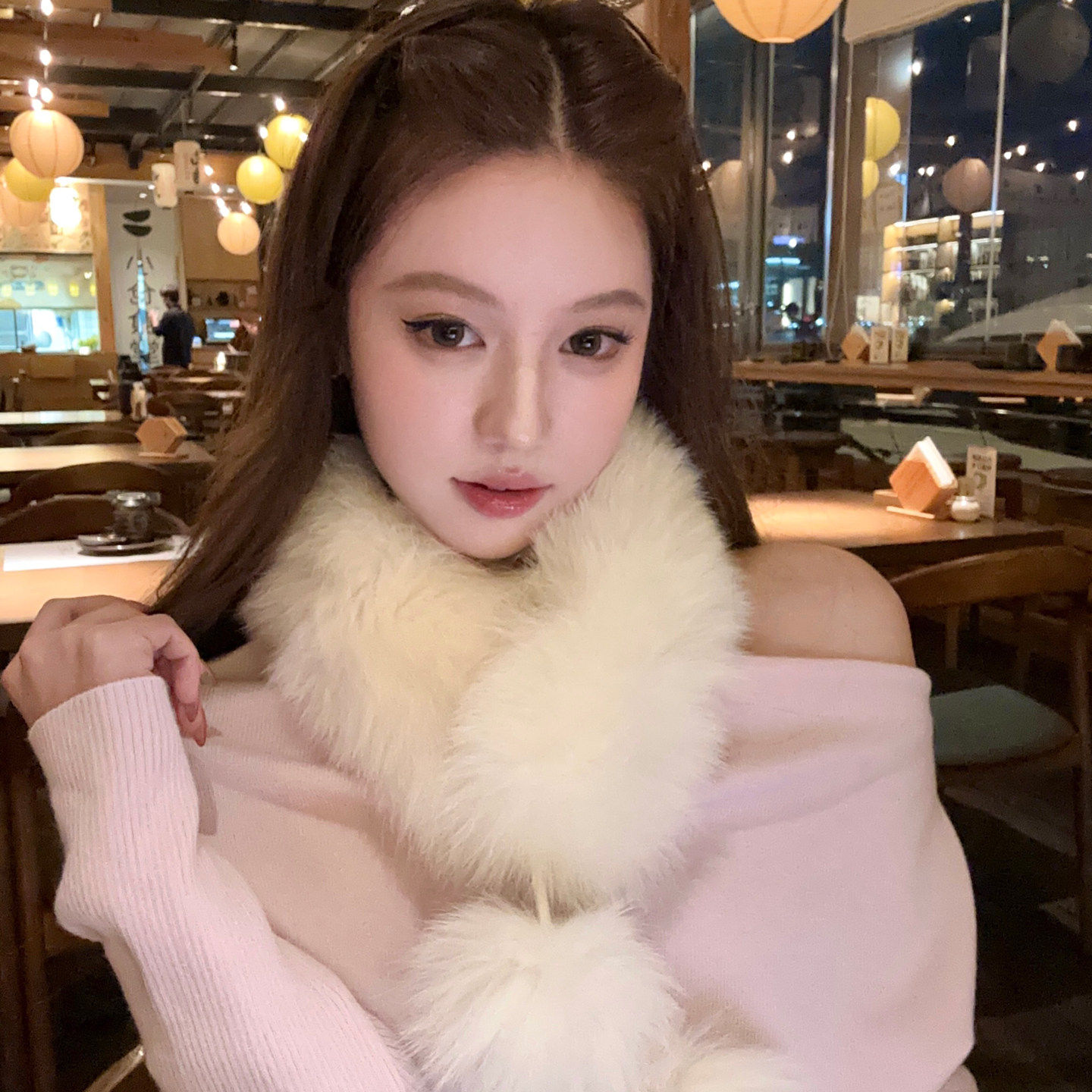 狐狸毛围巾女冬季双面保暖简约气质百搭仿皮草兔毛领毛球毛绒围脖