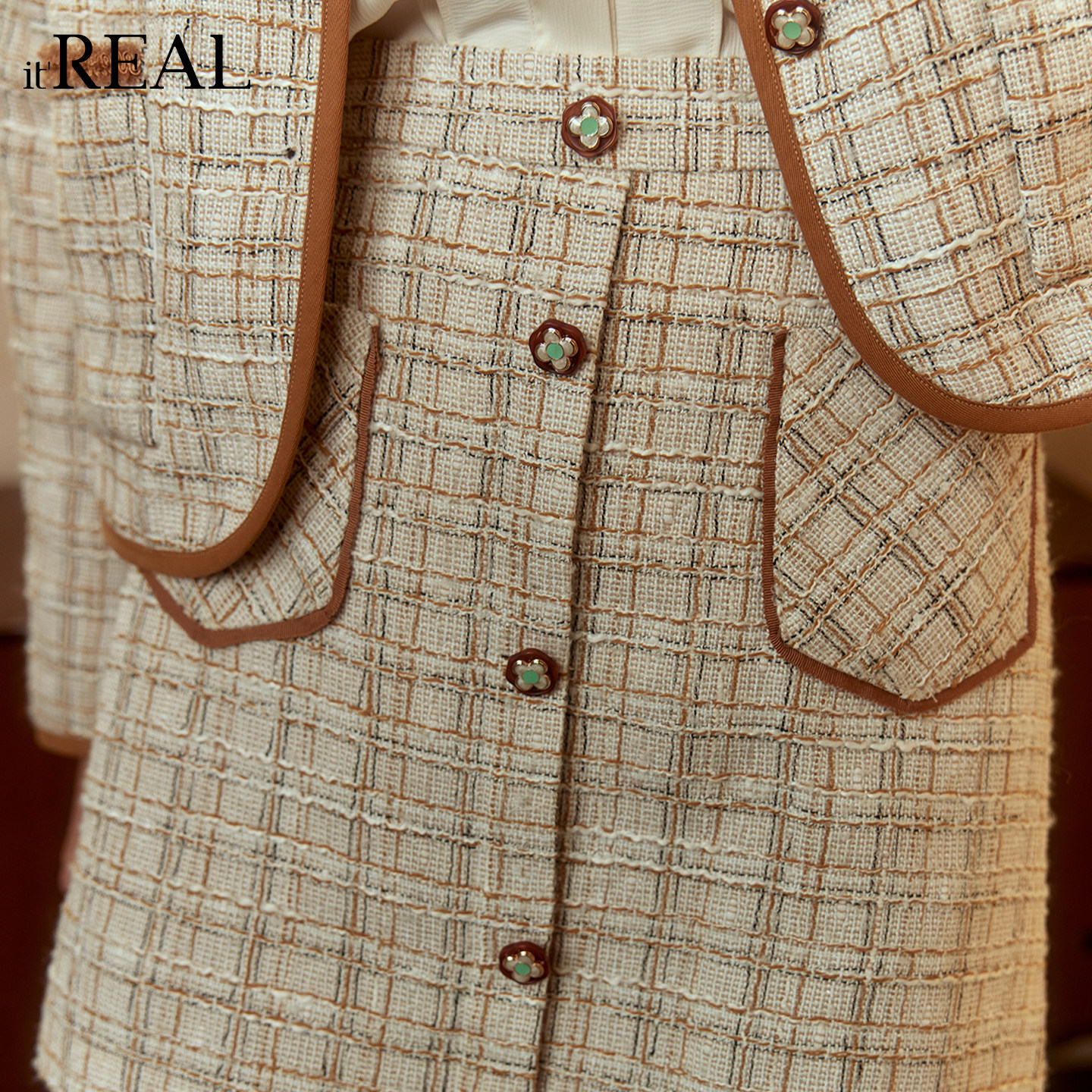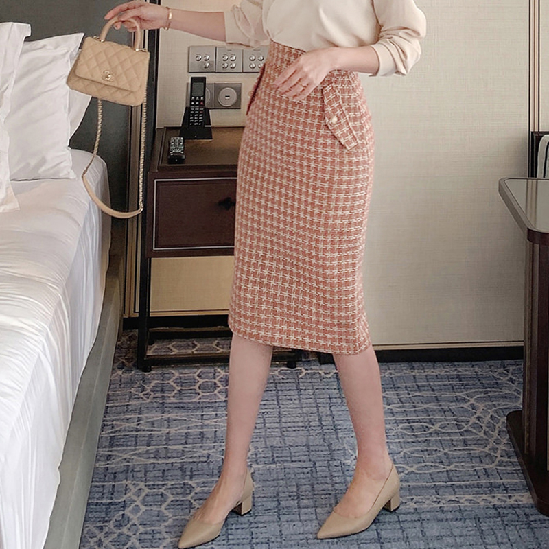 - 格子包臀裙毛呢