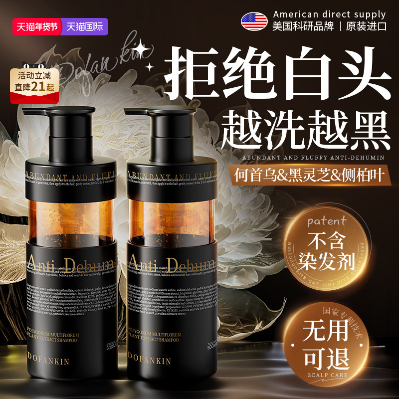 进口何首乌洗发水侧柏叶养发灵芝纯植物变黑控油蓬松男女官方正品